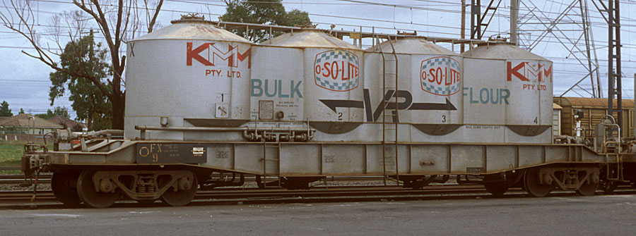 The FX's main traffic was from Albury, N.S.W. to Westall and Williamstown Pier. Their design shares many similarities with JX cement hoppers, the main difference being that the FX's had 4 hoppers versus 3 hoppers on the JX.
