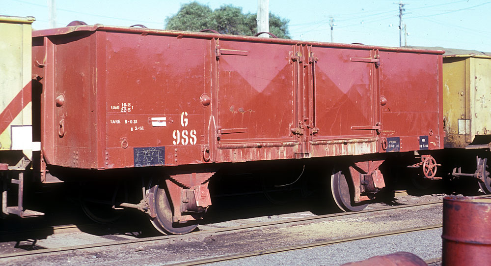 As more bogie wheat hoppers were built the number of GY's was reduced by recoding some to G for general (non bulk grain) traffic, the original GY number was retained. The use of the letter G could be considered a mistake as the letter G had formerly been used to denote a bulk grain wagon (GZ, GY, GJF etc) At first the wagon was simply painted with a brown diagonal stripe (as shown above) but as the wagons were shopped they were painted in the usual VR wagon red (as shown below) | |||||||||||||||
