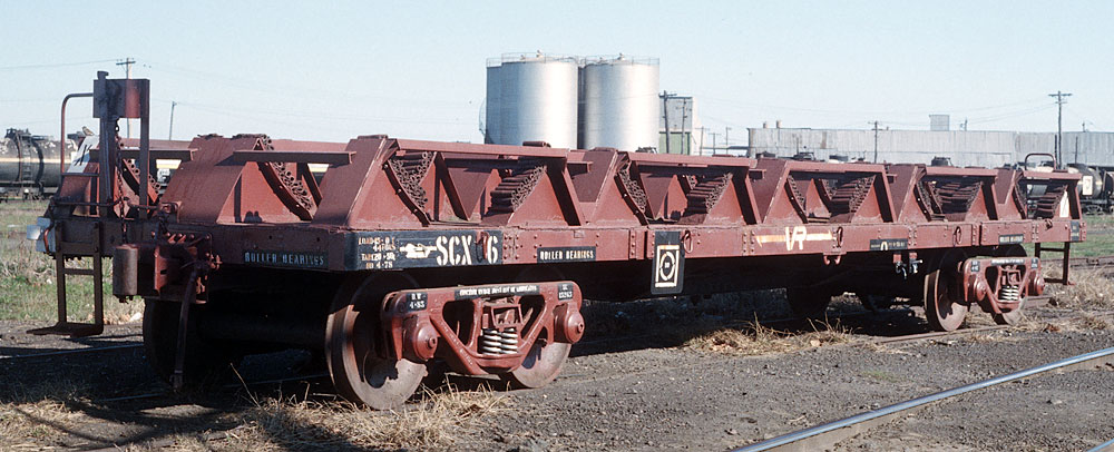 SCX's were converted from E open wagons. 1 - 4 were originally coded SC. #'s 5 - 8 were built as SCX. SCX's had specially designed cradles to transport up to 10 rolls of electrical cables . The Aug. 1961 VR newsletter states that they were to carry "SEC 222,000 volt steel cored aluminium cable. It will hold 10 large reels each weighing 4 tons"