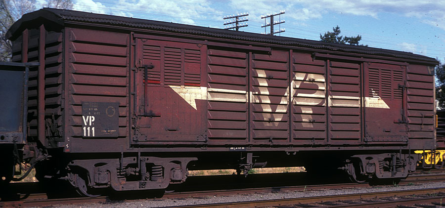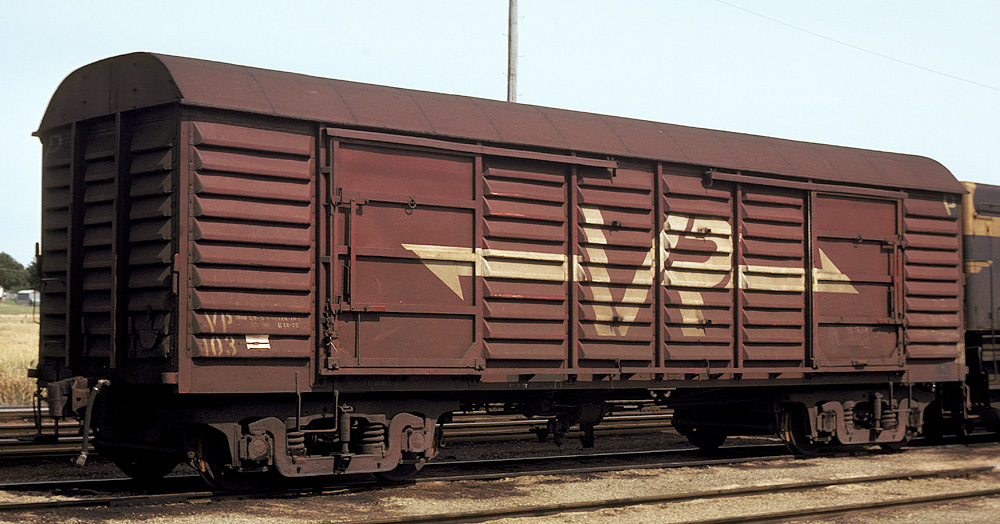A very common sight on passenger trains they transported parcels traffic/mail/luggage. They featured high speed bogies and were equipped with taildiscs and tail lamp brackets. At least 10 were always on standard gauge for use between Melbourne and Sydney on interstate passenger trains. When on SG they had to be fitted with grade control equipment which necessitated the fitting of number boards. | |||||||||||||||