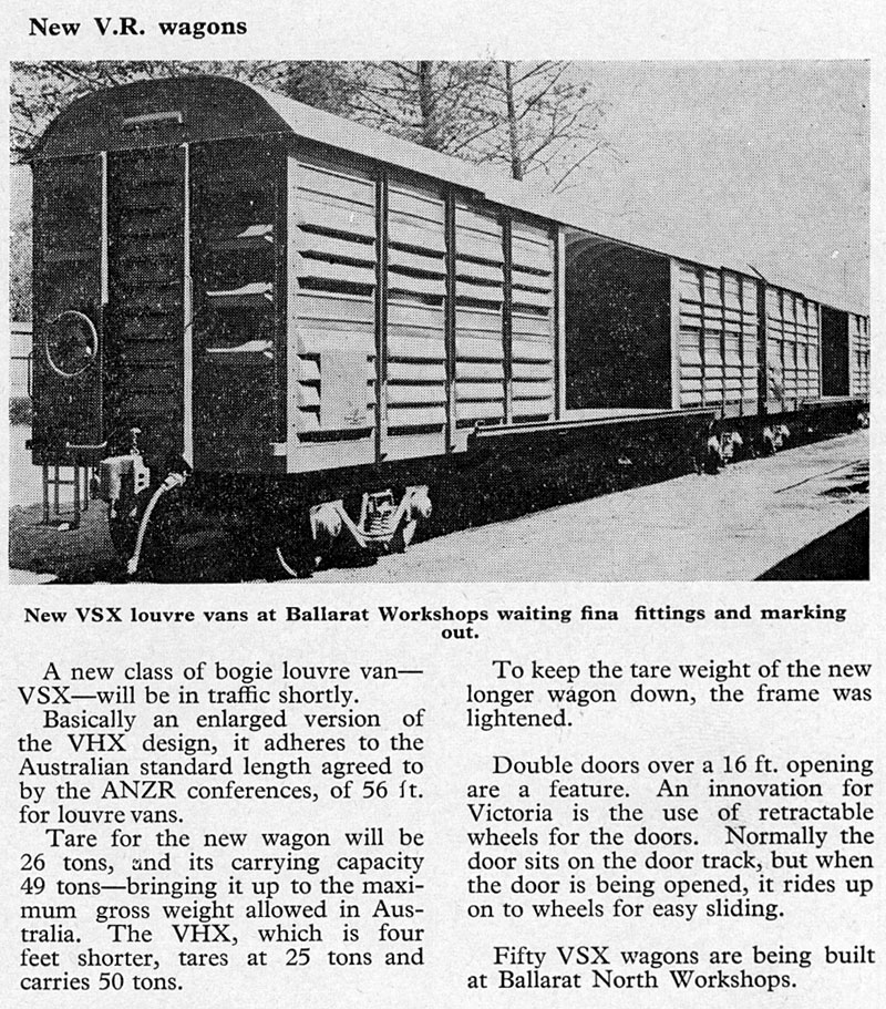 The largest louvre van VR ever built the VSX's saw extensive service in interstate service all over Australia. The main variation within the class was that early VSX's had end louvres, later VSX's did not.