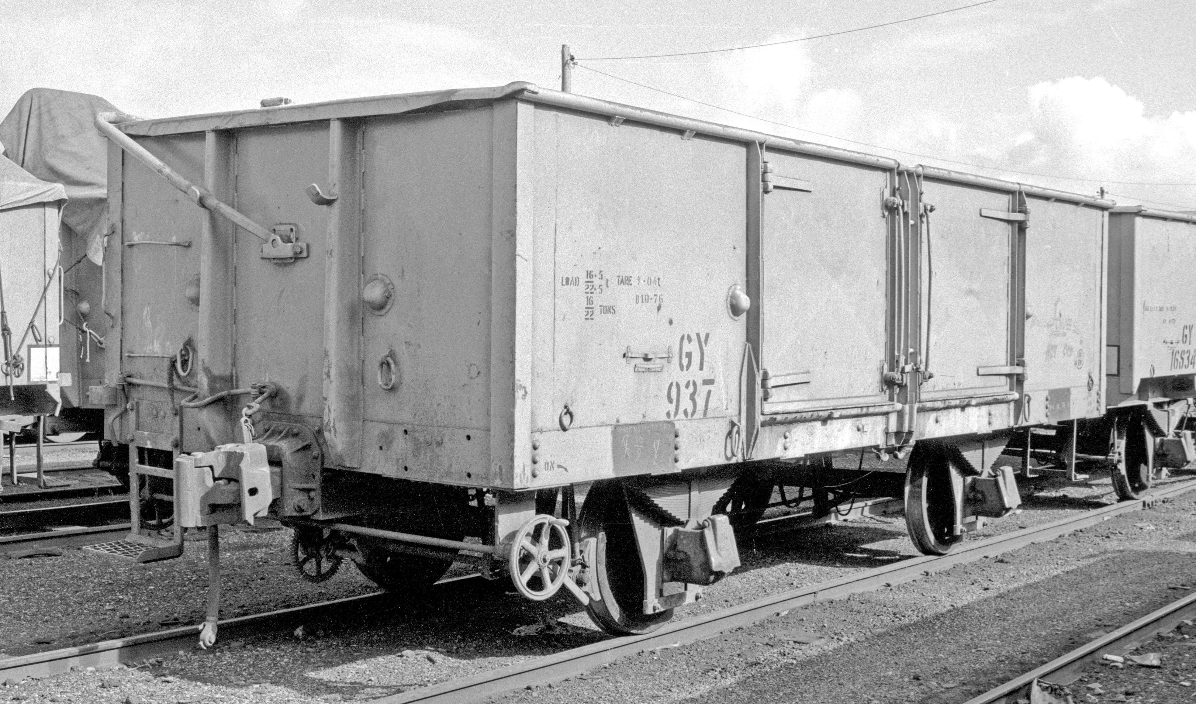 ABOVE & BELOW: GY 960 in 1978. In about the mid 1970's VR went to this style of tarp instead on the traditional canvas type, it was some sort of heavy plastic. In the photo below, (to show the handbrake and stencils) it looks like the brake block needs a bit of adjustment.
