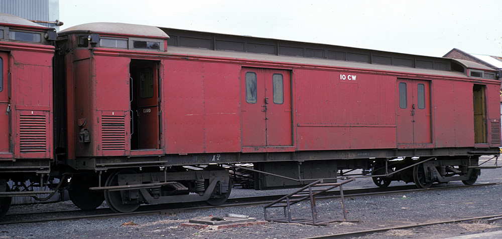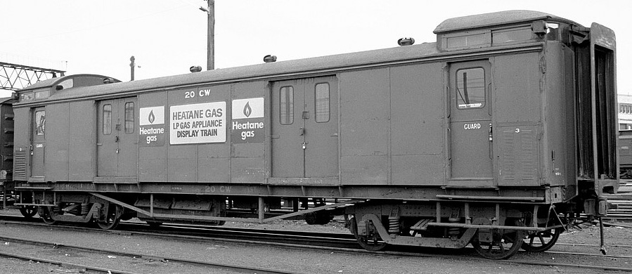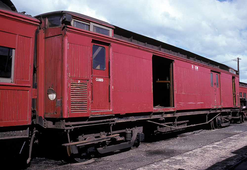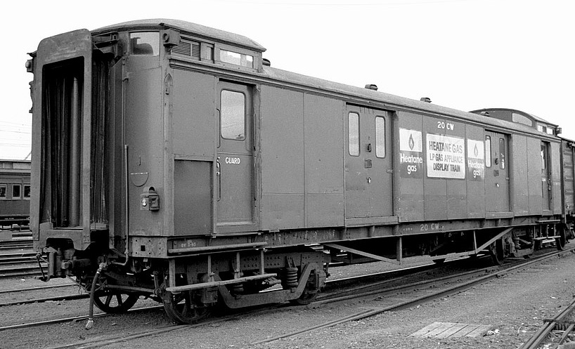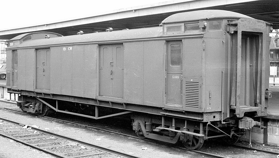 Built alongside the W class cars (AW, BW, ABW) they were in general passenger guards van service all their lives although by the late 70's they rarely were seen on longer distance trains. Most had their wood sides replaced by sheet steel. Numbers 1 - 15 had celestory roofs, numbers 16 - 20 had plain curved roofs. |