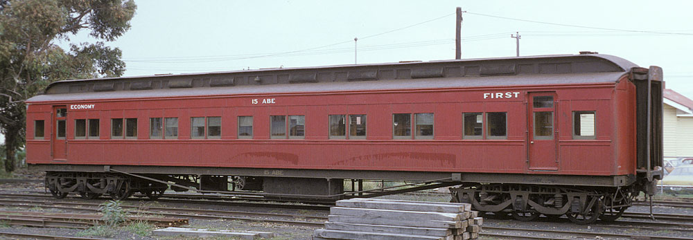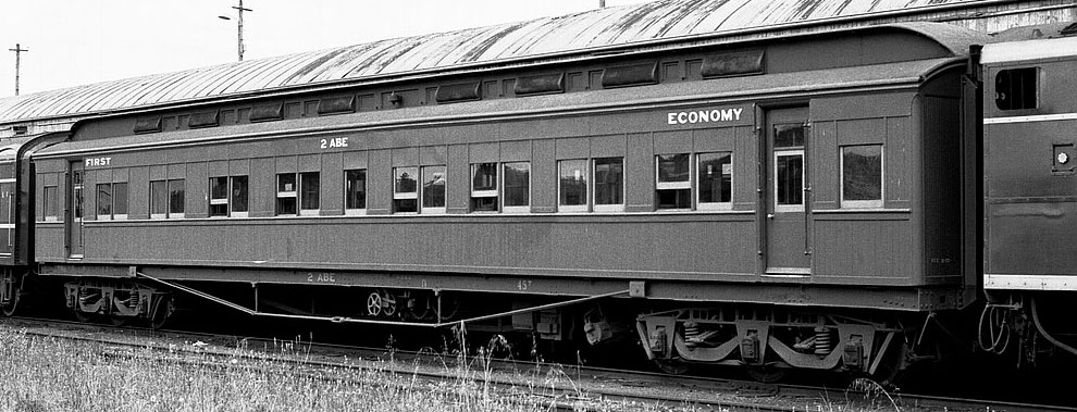 Built alongside the AE and BE class these cars were combination first and second class cars with a toilet in the middle of the car. ABE's could carry 26 first class and 36 second class passengers. They were rated at 45 tons. | |||||||||||||